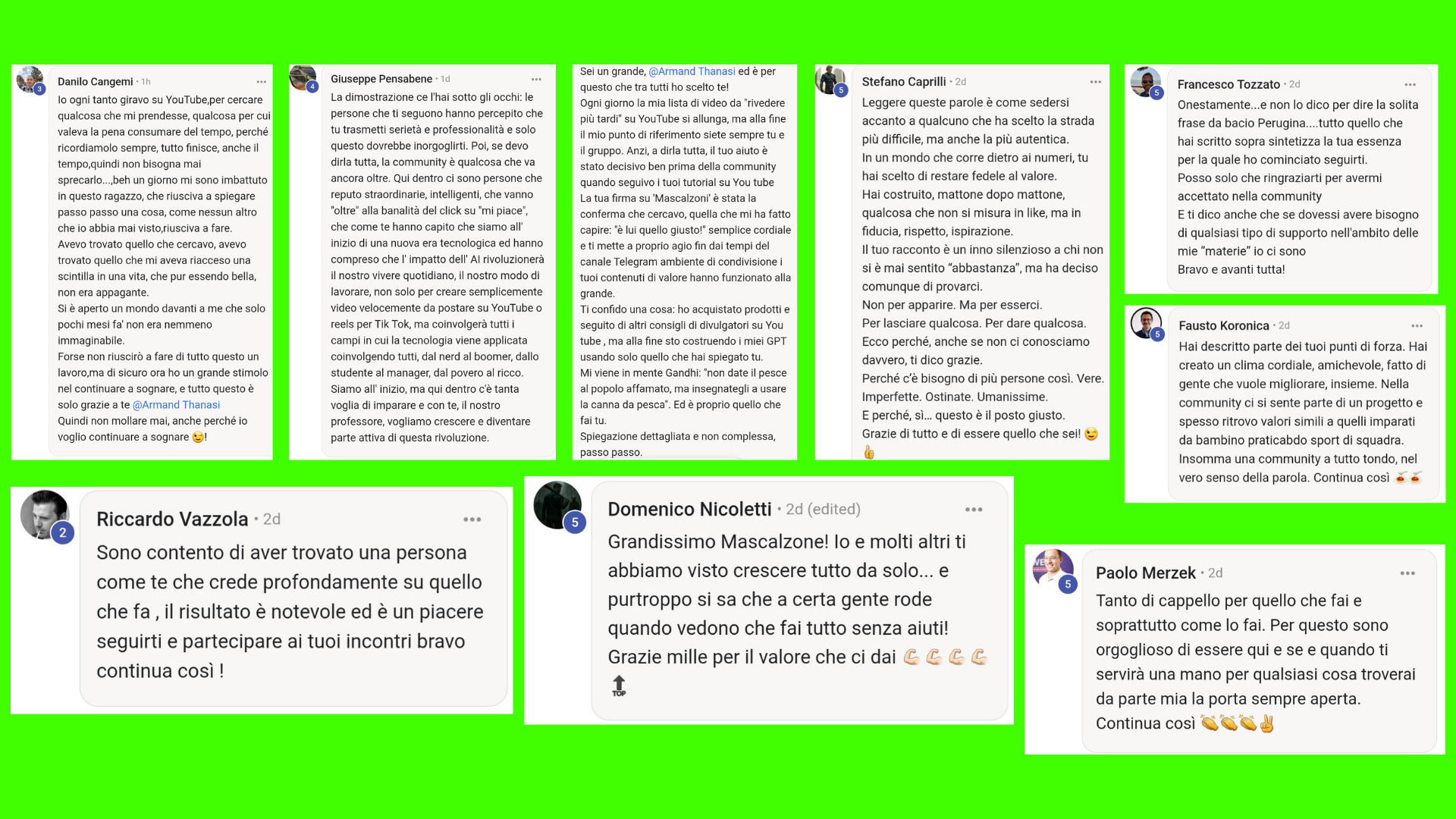 Sto costruendo una community di valore, seguita ogni giorno da migliaia di persone sui social. Un gruppo dove ci aiutiamo, impariamo insieme e cresciamo nel mondo dell’Intelligenza Artificiale. Ora puoi unirti anche tu e diventare parte di questa Tribù.