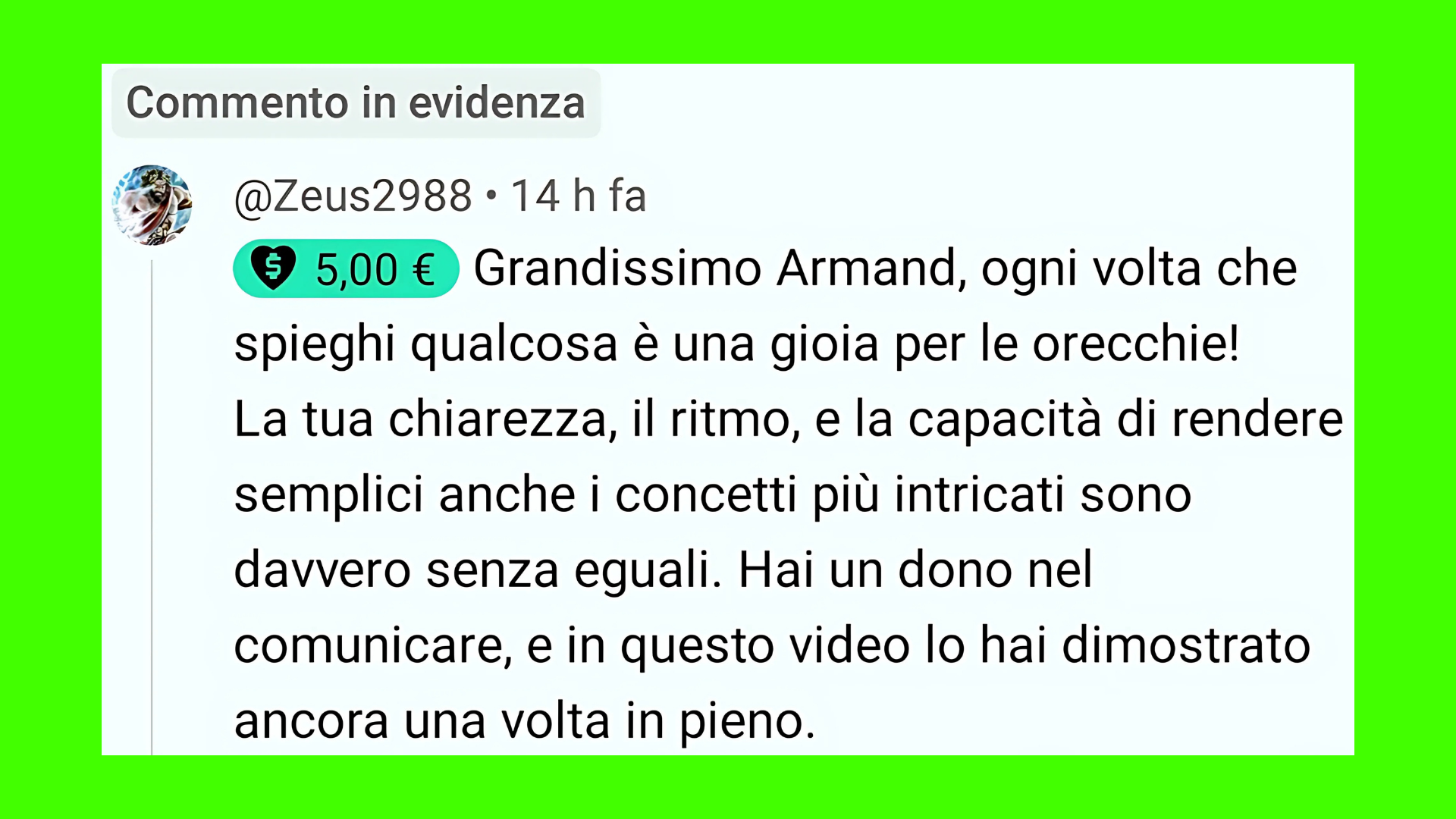 Il prezzo aumenterà nel tempo, ma chi sceglie di entrare oggi avrà accesso a un prezzo bloccato per sempre. Questo significa poter usufruire ogni giorno di tutto ciò che l’accademia offre: contenuti in continuo aggiornamento, una community in crescita costante e una Masterclass LIVE settimanale con Armand e altri professionisti di alto livello, provenienti da diversi settori, sia lavorativi che creativi.