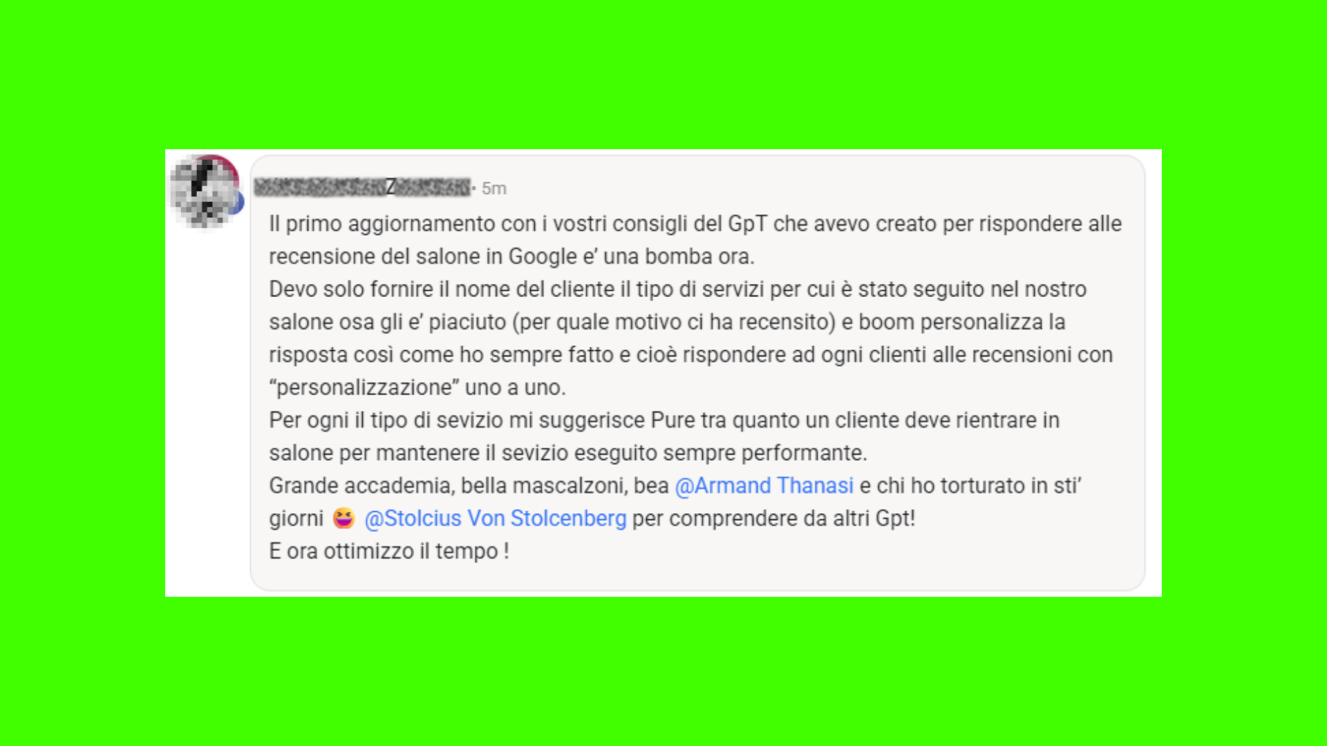 per la nostra community, che non trovi altrove. Contenuti esclusivi, sempre utili, creati da me e da esperti che usano l’AI ogni giorno.